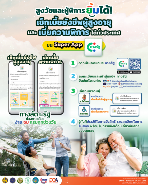 เพิ่มช่องทางในการเช็กเบี้ยยังชีพผู้สูงอายุ และ เบี้ยความพิการ บนแอปฯ ทางรัฐ