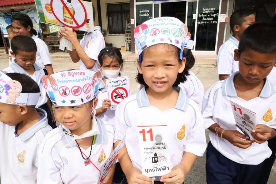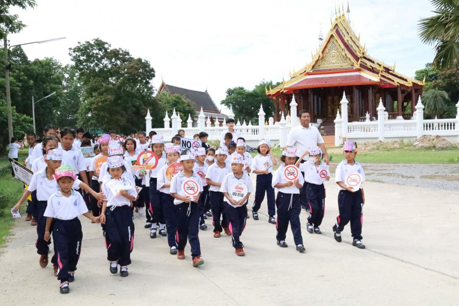 และเดินขบวนรณรงค์ รวมพลังไทย ต้านภัยยาเสพติด เพื่อให้นักเรียนและชุมชนเร่งเห็นโทษ อันตรายของยาเสพติดและบุหรี่ไฟฟ้า